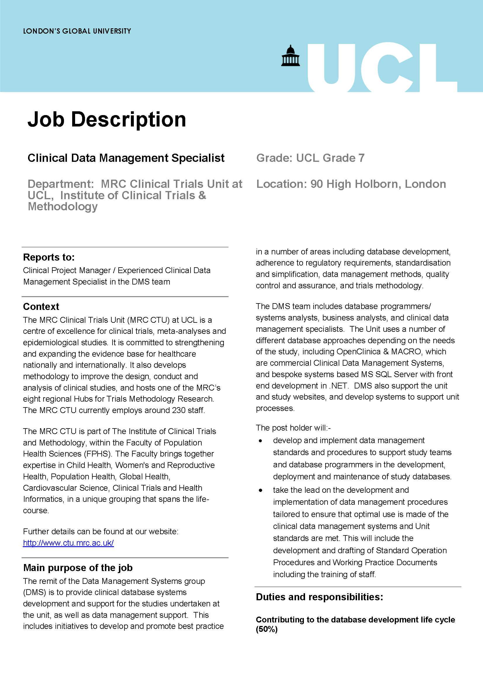 Vacancy for Research Nurse at University College Hospital London NHS Trust in London. All Research Nurse jobs in London on Careerjetcouk the search engine for jobs in the UK. The UKs No1 job site is taking the pain out of looking for a job.